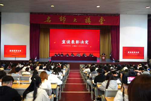 此次表彰大会圆满落下帷幕,希望受表彰学生在今后的学习与生活中再接再励,再创佳绩;祝愿广大学子激发干劲、奋勇前进,为中华民族伟大复兴的中国梦持续增添新力量。(郭松、林蕊、刘思浩/摄)