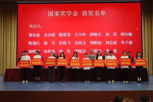 此次大会为“国家奖学金”“国家励志奖学金”“自治区人民政府奖学金”“筑梦奖学金”“三好学生”“优秀学生干部”“学习标兵”“优秀寝室长”“优秀班集体”学生代表进行表彰颁奖。出席活动的现场领导依次为获奖学生代表颁奖。