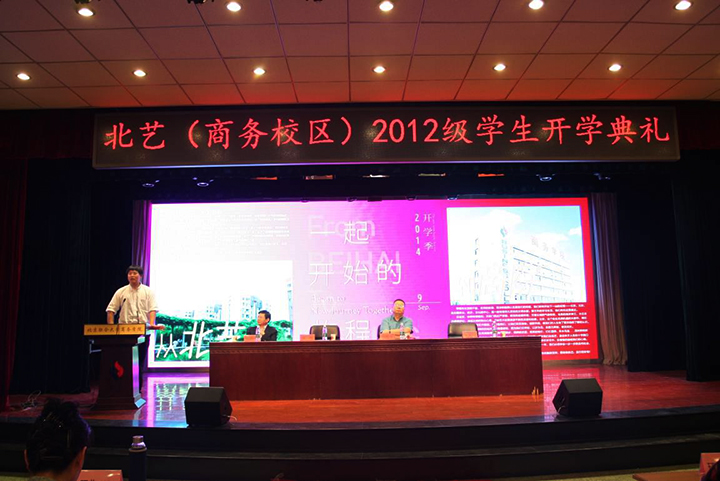 在这层林尽染,硕果累累的金秋九月,我们于2014年9月15日上午9时许,在北京服装学院北校区大礼堂隆重举行北海艺术设计学院北服校区2014-2015学年开学典礼。会议由徐佳老师主持,出席此次会议的领导有,北京服装学院北校区单兵主任,北京服装学院继续教育学院史学伟院长,北海艺术设计学院郑超副院长,幸星教育科技有限公司教学部总监单雷老师。参加开学典礼的学生有环艺、服装、动漫、产品等四个专业,共计300余名学生。会议在庄严肃穆的国歌中正式开始。