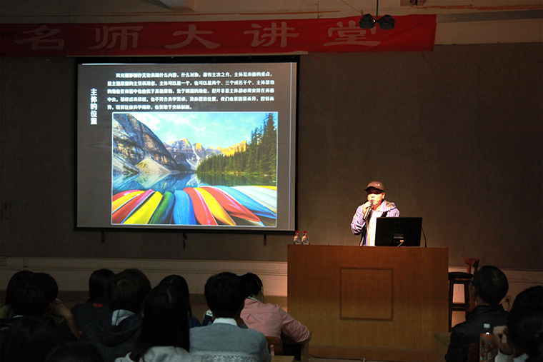 徐勇忠先生首先在讲座中为广大师生阐释了关于风光摄影的相关知识和技巧:如色彩的对比,构图要注意的事项,空间的划分,摄影主体与陪体的位置,风光片的景深与曝光,光线的运用技巧等。徐勇忠先生认为摄影除了要掌握拍摄技术,更应关注拍摄的创意,关注摄影美的发现与创造,并最终形成自己特有的艺术风格。