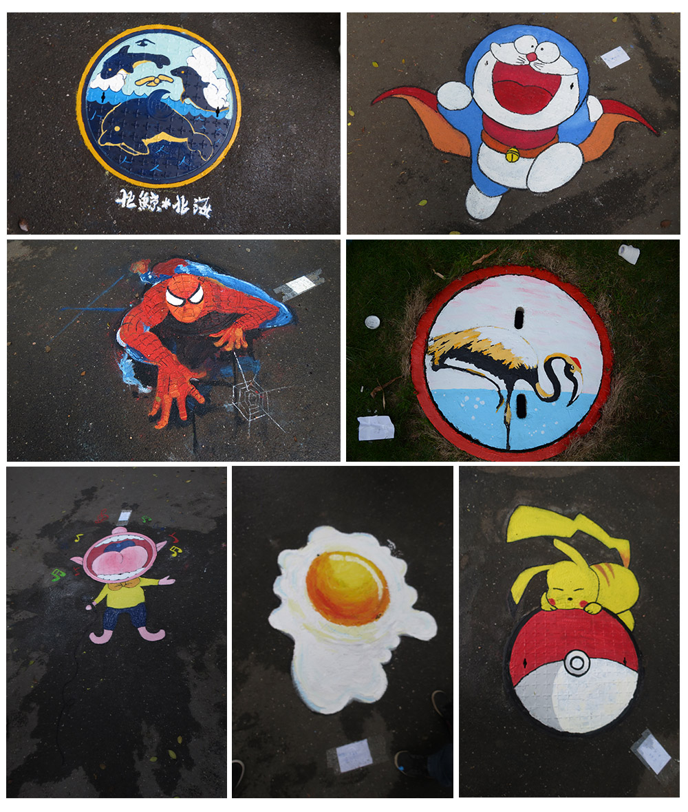 近日,学院的老师和同学们都会惊喜地发现,原本普通的井盖摇身一变成了一幅幅色彩缤纷的图画——表情夸张的哆啦A梦,调皮捣蛋的比卡丘,生动逼真的蜘蛛侠……生动活泼的造型与图案充满艺术美感,给校园带来了盎然生机。