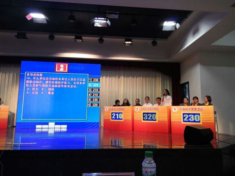 为纪念第28个世界艾滋病日,在社会中普及艾滋病防控知识,提升人民群众防治艾滋病的法制意识,北海卫生监督于2015年11月30日在北海七中举办了《广西艾滋病防治中心条例》知识竞赛,我院由周晓敏老师带队,由赵鸣宇、黄玥、姜杭三名学生组成代表队应邀参加此次活动。