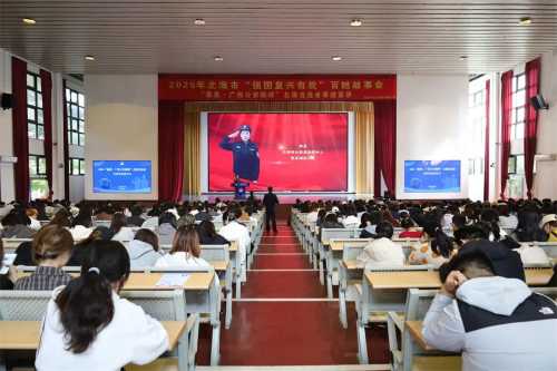 在法治教育宣传环节,市公安局多警种联动,围绕校园安全开展专题宣讲。交警支队民警结合典型案例揭示超速行驶、酒驾醉驾的危害,呼吁全体师生“青春不‘飙’车 安全向未来”。治安支队民警以校园暴力为切入点,深入剖析典型案例,传授自我保护技巧。新网侦支队民警聚焦网络安全,揭露在学生身上常见的刷单返利类诈骗、网络游戏产品虚假交易等诈骗手段,引导学生识别网络风险,筑牢“网络防火墙”。禁毒讲师、银海分局民警结合涉毒案例,详细讲解了毒品的危害及新型毒品“依托咪酯”的风险,增强青少年禁毒意识,并倡导青少年坚决对毒品说“不”。