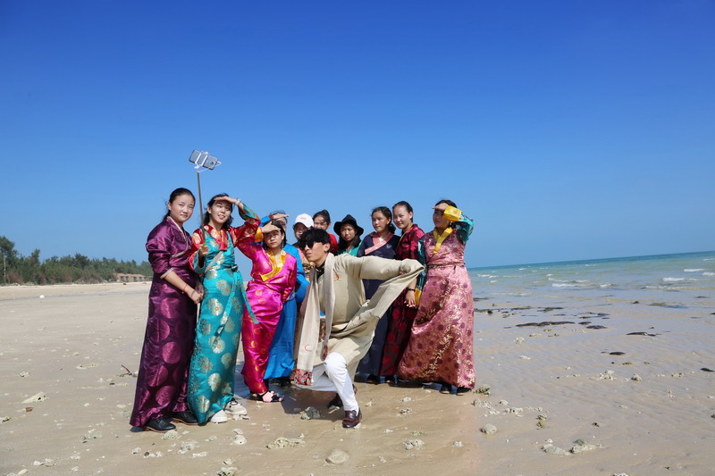 在滴水丹屏天然的拍摄地,西藏班同学们开始微电影课程的拍摄练习。根据任课教师张文静平时给同学们讲解的微电影中光线、色彩、运动、构图造型手段运用以及电影画面画幅、景别划分、摄影构图知识后,同学们抓紧时间进行民族舞蹈分场的拍摄练习。