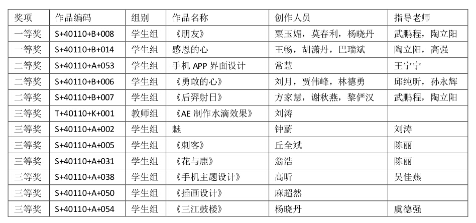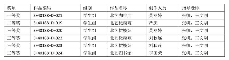 设计学院获奖名单