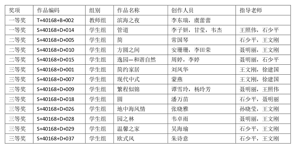 环艺学院获奖名单