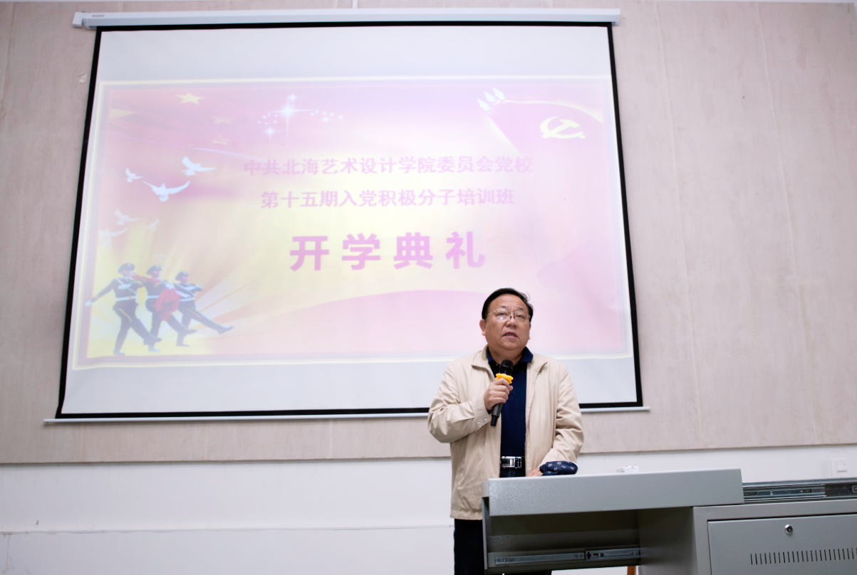 中共北海艺术设计学院委员会第十五期入党积极分子培训班开学典礼于2016年12月3日上午9时在学院西校区公德楼107教室隆重举行。学院党委书记、党校校长贺争平,以及学院党委委员、直属各部门、各二级学院党总支、党支部负责人应邀出席开学典礼。