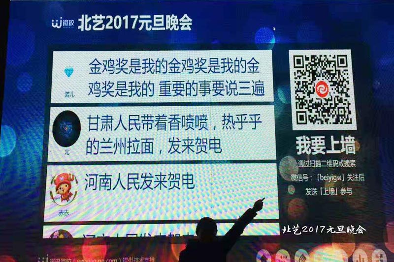 本次晚会新增了微信上墙活动,同学们都踊跃的在本校的微信公众号后台留言。