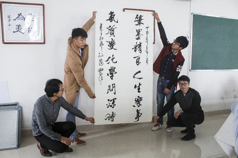 杜中信教授还指出,学书法如同做人,要脚踏实地,为此他举出了周总理的座右铭:与有肝胆人共事,从无字句处读书。从现实出发去学习、思考、行动,从细微之处且无心杂念深度入手,从还没有发现的、还没存在的方面去创新创造,才会成功或更加成功。讲学最后,杜中信教授还专门为同学们题字“笔墨精良人生乐事,气质变化学问深时”。在座师生受益匪浅,并期待杜中信教授再次前来我院指导讲学。