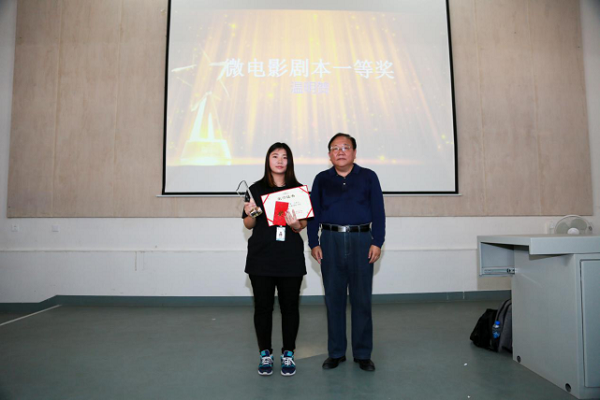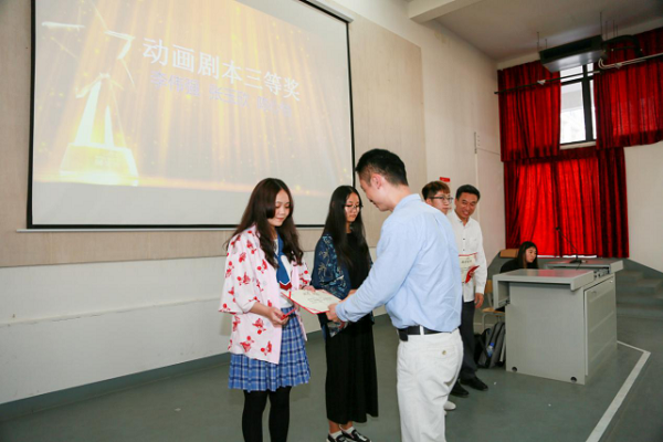 典礼,首先播放了此次大赛的宣传视频。紧接着由本次大赛策划人吴静雯老师介绍本次大赛组织情况,本次大赛参与稿件百余件,获奖作品共有22部,其中动画短片剧本11部,微电影剧本11部,设优秀奖5部、三等奖3部、二等奖2部、一等奖1部。
