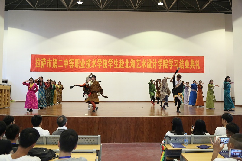 随后,拉萨二职教师贵桑多吉代表二职师生衷心感谢北艺的扶持办学,感谢北艺领导老师们的辛勤付出,两校的合作促进了汉藏文化交流,也增进了民族友谊,欢迎北艺师生到拉萨二职做客。