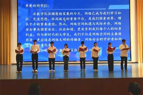 启动仪式上,我校传媒艺术学院播音与主持艺术专业学生代表宣读《大学生网络安全倡议书》,号召广大青年学生积极践行网络安全规范。