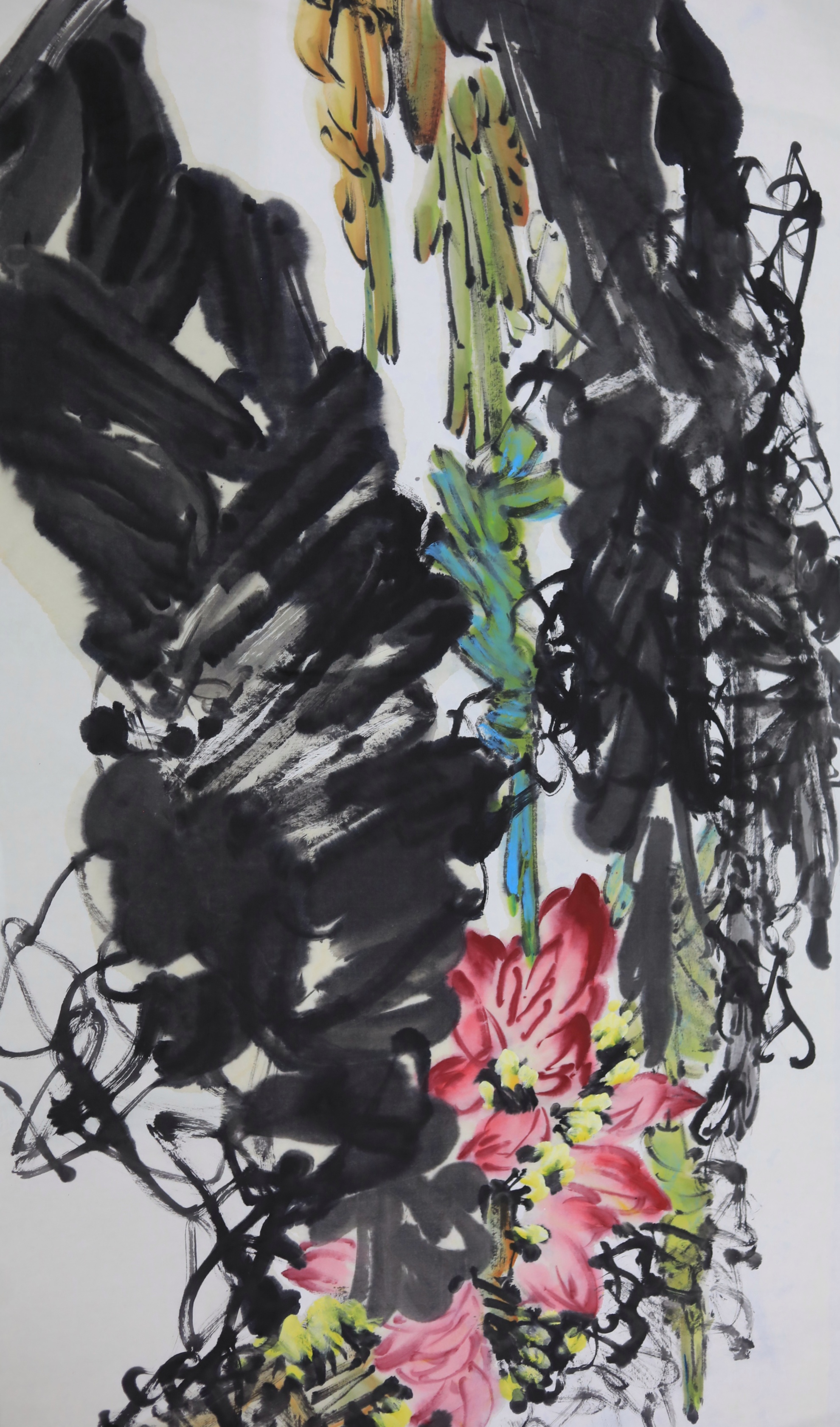 第二步:将笔墨着力于芭蕉花的细致刻画,尊重绘画对象,注重处理好画面的笔墨关系,尤其是虚实关系和色彩墨色的和谐统一。