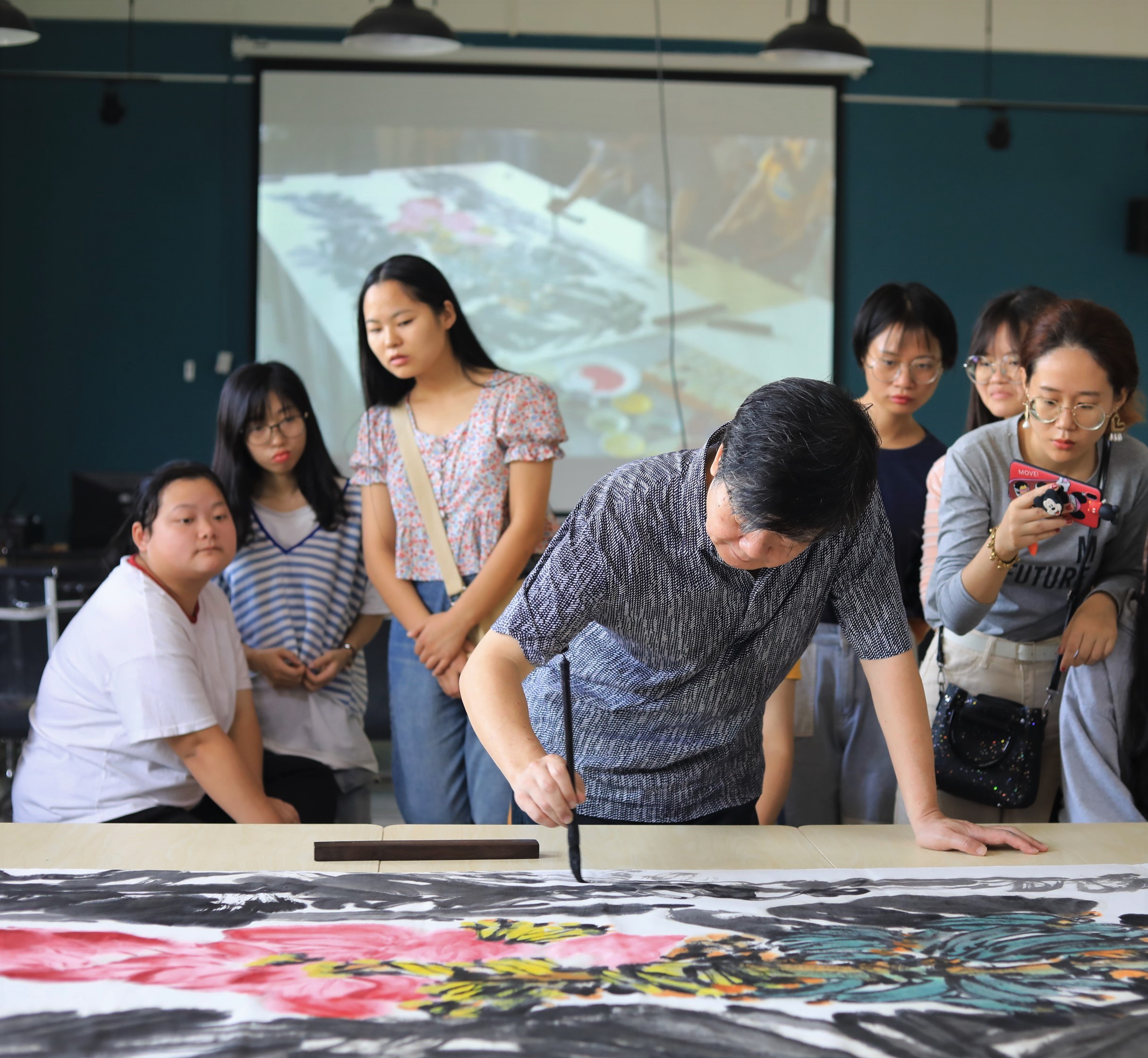 随后,蔡教授开始进行范画创作,并对创作过程进行了深入浅出的讲解。