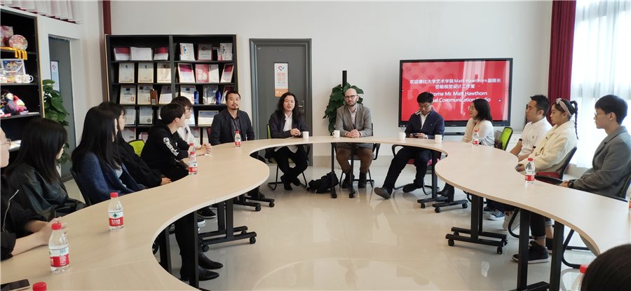 德比大学副校长Matt Hawthorn教授对我校一年来国际交流项目工作取得的成绩表示祝贺,并愿意帮助我校学生了解更多国际设计中的教学模式,将为我校国际班学生提供更多的赴英国深造学习的机会。