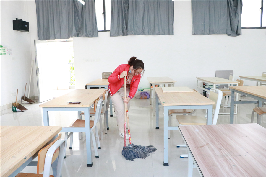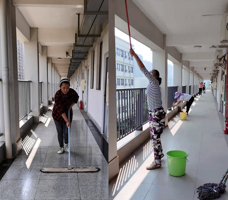 2月24日,各单位根据责任分工,分别组织教职员工对校园内办公楼、宿舍区、图书馆、实训室、工作室、食堂、绿化带等公共区域等进行大扫除,同时,注意检查园舍的各个设施安全,清理水电故障、排除安全隐患,对已损坏的防疫标识进行排查更换。在卫生清洁过程中,所有全体教职工积极参与,团结互助,整个校园环境面貌焕然一新。在劳动过程中,分管领导现场指挥并仔细地检查了各组清洁区域卫生,确保清除每一个卫生死角。
