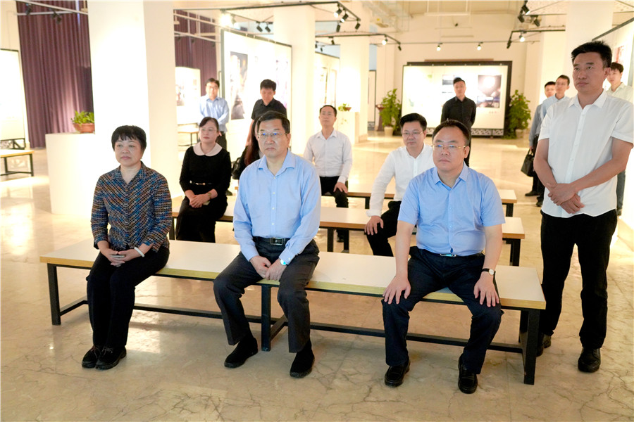 市领导彭鸣达、马南萍、刘伯贤及学校全体领导陪同调研并参加座谈会。(李宗毅、郭 巍/摄)