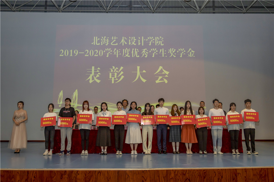大会在雄壮的国歌声中拉开序幕,党委书记张阳宣读了表彰决定。与会领导依次为获得国家奖学金、国家励志奖学金、自治区人民政府奖学金、北海艺术设计学院优秀学生奖学金获得者颁奖。
