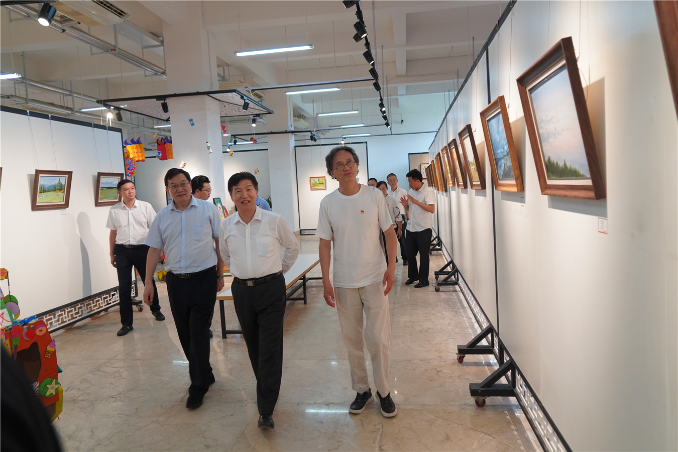 刘小明观看了教育学院舞蹈表演专业学生排练的党史题材舞蹈《八女投江》、学前教育和艺术教育专业教学汇报展、《中国共产党百年历程导读》展示展板、环艺学院红色元素模型设计展及图书馆党史阅读角,听取了动画学院为迎接建党100周年而制作的动画片《半条被子》和网络电影《唱给海的歌》制作进度情况,深入了解我校开展党史学习教育和加强意识形态阵地建设情况。刘小明对我校党史学习教育的做法和成效给予了充分肯定,并对学校提出要创办西部一流艺术设计学院、建成民办高校党建工作典范的要求。