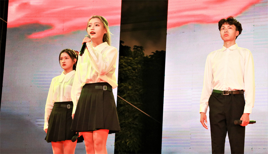 播音与主持艺术专业同学带来的朗诵节目《不朽》,以声传情唤醒观众浓烈的爱国心,缅怀革命先辈光辉历程,激励大家面向未来不断向前。