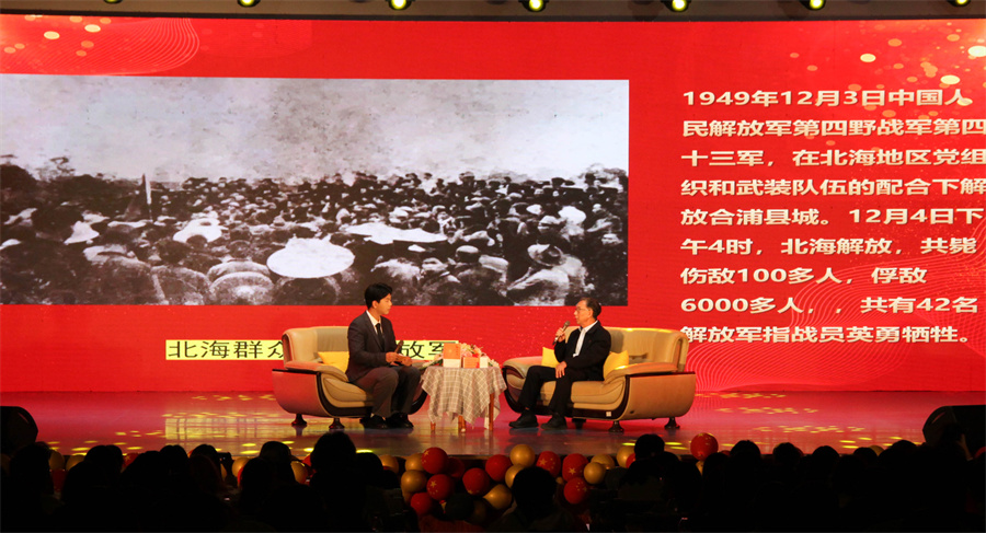 北海市委党史学习教育领导小组办公室指导督导组组长、市委市政府督查绩效办副主任苏志安,北海市党史专家、北海市政府经济研究中心原主任李玉华,中共北海市市委党史研究室吴显祥,学校党委书记张阳、校长卢新华、党委副书记兼副校长彭仁、党委副书记韦静月、副校长邱杰、副校长刘朝雄及各行政部门、二级学院代表与500多名师生代表共同观看了分享会。