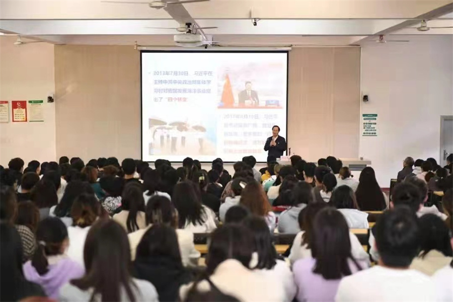 廖立勇结合自己的工作经历和学习体会,以人类向海发展的历史进程切入,深入学习习近平总书记关于建设海洋强国的重要指示精神,详细阐释北海大力发展向海经济,建设向海经济发展示范城市的重要意义、优势和基础,以及具体努力方向。鼓励我校广大师生胸怀“国之大者”,坚持勤奋学习,勇于创新创造,矢志艰苦奋斗,扣好人生第一粒扣子,勇做走在时代前列的奋进者、开拓者、奉献者,努力书写人生的美好篇章,为实现“使北海成为一个令人向往的城市、让北海人民为生活在北海而自豪”奋斗目标作出应有贡献。