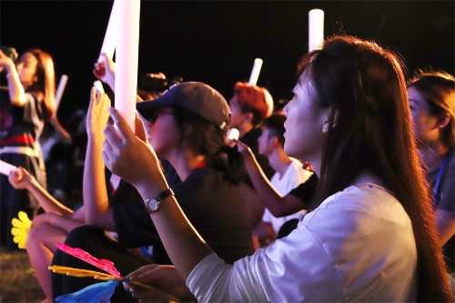 我们青春无畏,乘风破浪,踩着音乐的节拍,带动现场的观众激情呐喊,欢乐四溢。