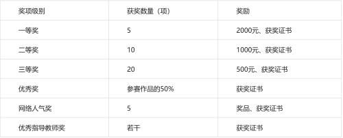 (四)网评:复评结束后将开启网络人气奖评选通道,学校将通过复评的作品进行公开网络投票,共评选出5项网络人气奖。