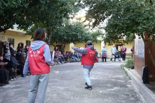志愿者们为老人们精心准备了许多节目。老人们看得津津有味,他们的脸上洋溢着欢乐和满足的笑容。