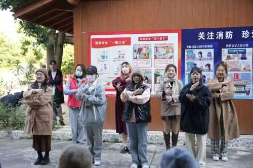 (志愿者与老人们一起唱歌)