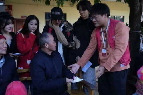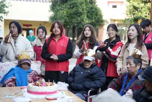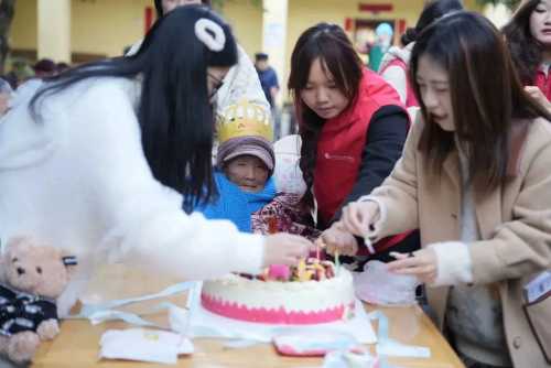 在表演完节目之后,志愿者们为老人们切蛋糕、唱生日歌。看着老人们品尝着蛋糕,听着他们的笑声和对学生们的祝福,志愿者的心中充满了幸福和感动。而对于敬老院的老人们来说,一次热热闹闹的生日会也成为他们日常生活里的调味剂。