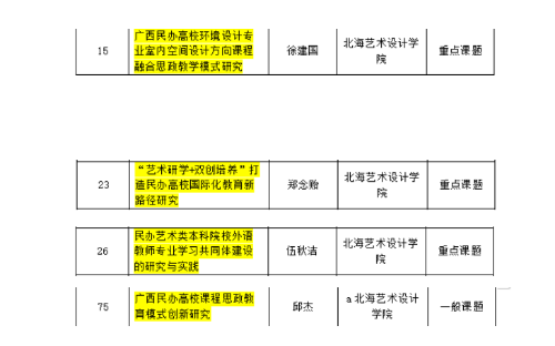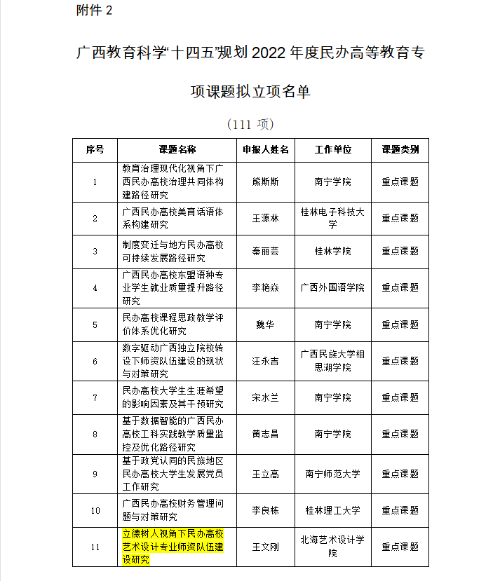 关于广西教育科学规划领导小组对教育科学“十四五”规划2022年度高校创新创业教育、民办高等教育专项课题拟立项名单公示的通告