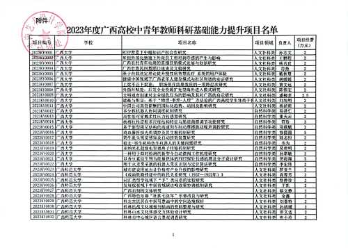 自治区教育厅关于公布2023年度广西高校中青年教师科研基础能力提升项目名单的通知
