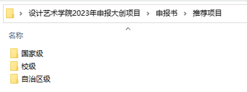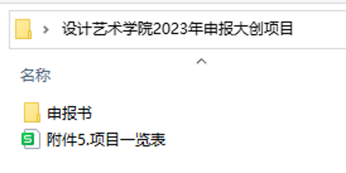 1.电子版:申报书(内含两个文件夹,分别以“推荐项目/未推荐项目”命名)、项目一览表。以上内容须置入1个文件夹内并压缩成1个Rar格式文件,文件夹命名:二级学院+2023年申报大创项目(例“设计艺术学院2023年申报大创项目”)。由各二级学院汇总后于2023年5月31日前发送至邮箱:bhyscxcy@163.com(不接收学生个人项目单独发到此邮箱)。二级学院文件夹压缩包层级如下: