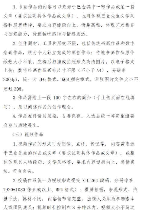 附件:关于开展“品读巴金”阅读创作大赛的通知
