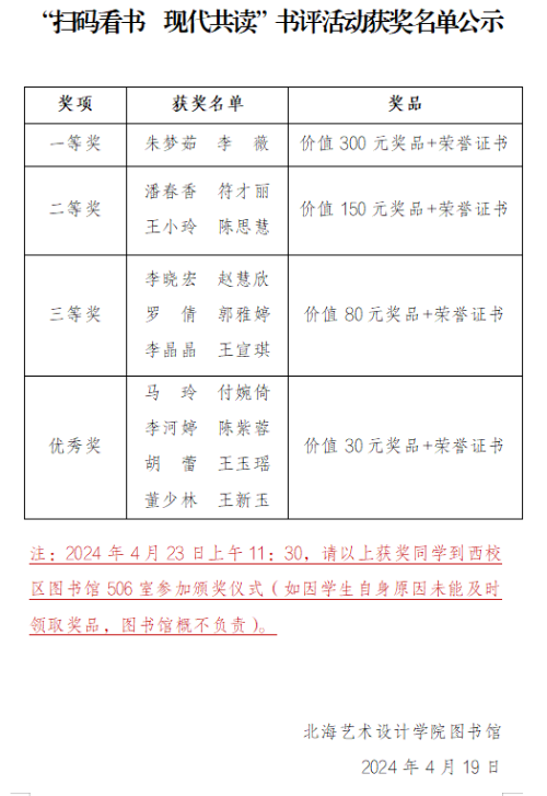 “扫码看书 现代共读”书评活动获奖名单公示