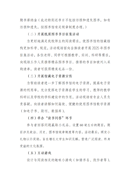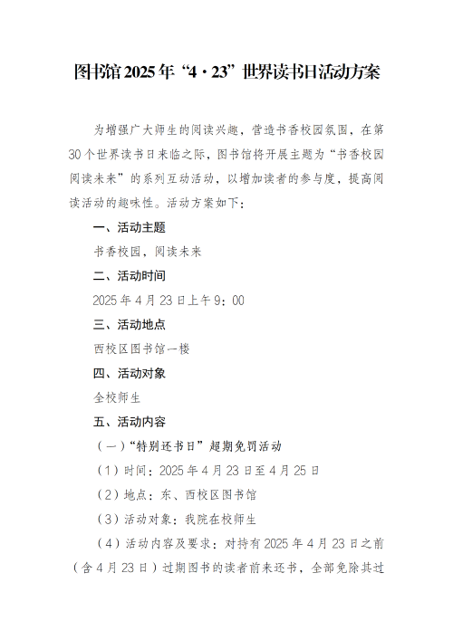 图书馆2025年“4•23”世界读书日活动方案