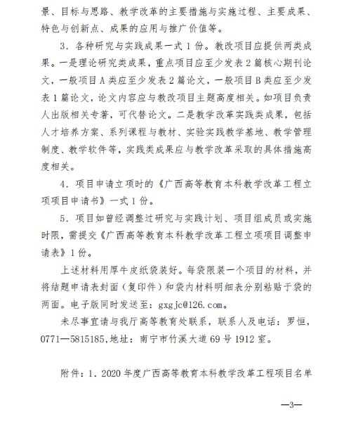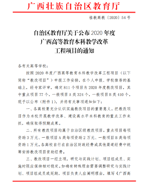 自治区教育厅关于申报2020年度 广西高等教育本科教学改革 工程项目的通知