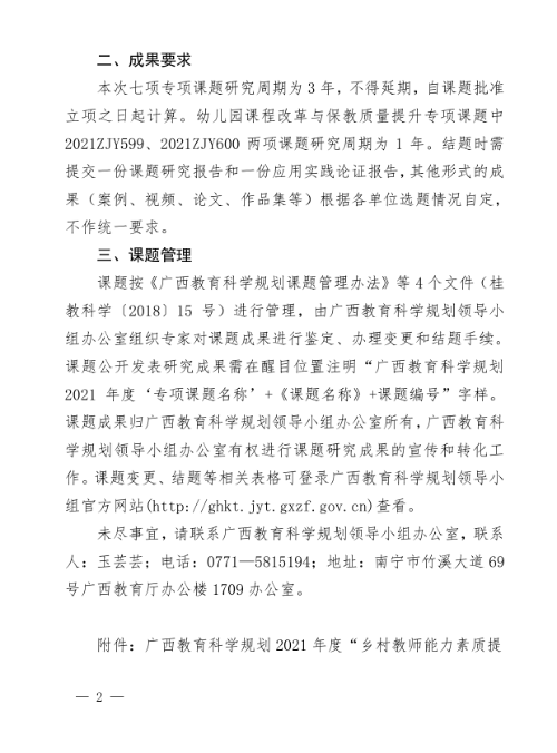 广西教育科学规划领导小组办公室关于公布广西教育科学规划2021年度“乡村教师能力素质提升”等七个专项课题立项名单的通知