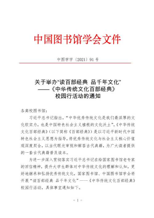 关于举办“读百部经典 品千年文化”——《中华传统文化百部经典》校园行活动的通知