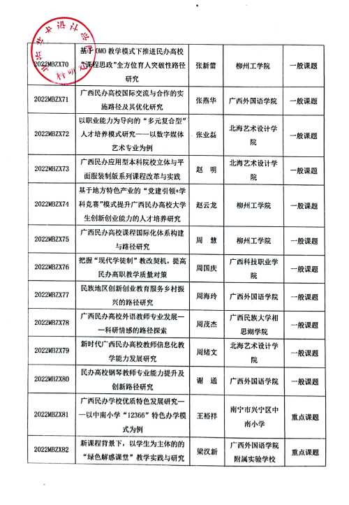关于公布2022年广西民办教育科学规划课题立项名单通知文件
