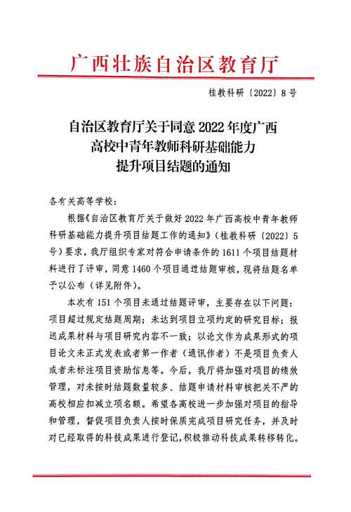 关于公布2022年广西民办教育科学规划课题立项名单通知文件