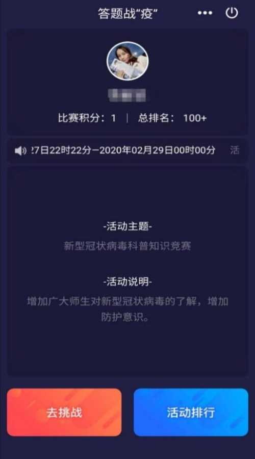 值此党的二十大召开之际,为进一步激发广大学生爱党爱国热情,增强同学们奋发进取、砥砺前行、报国圆梦的信念,图书馆特开展“喜迎二十大”答题活动。本次活动题目主要围绕党的二十大主题,每人每次答题5道题目,答对1题获得20分,满分100分,答错题不会倒扣分,每位同学每日仅能作答一次,作答次数上限为10次。