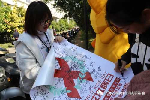 活动签名环节,同学们在横幅上写上了自己的名字,象征着同学们对此次防艾工作有着认真与负责任的态度。防艾工作,从自己做起!