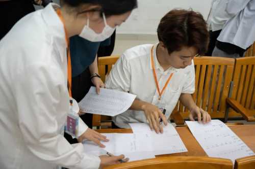 首先是参赛选手陆续开始进入比赛场地并有条不紊地进行签到环节,随后按座位表分派的座位各自就坐。