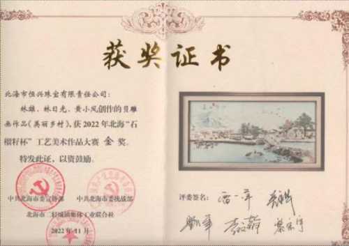 2023作品《国色芳华》获首届“北海有礼”特色旅游商品大赛优秀奖;