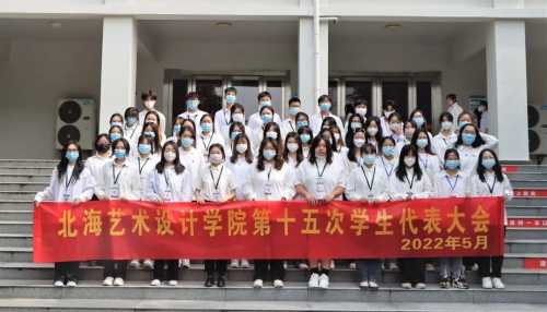 2022年5月21日,北海艺术设计学院第十五次学生代表大会在伦理楼107举行,各院系215名学生代表齐聚一堂。校党委副书记、副校长彭仁,校团委书记唐良春,校团委副书记宋慧敏,动画与传媒学院分团委书记巴瑞斌,设计艺术学院分团委书记王慧,建筑与环境艺术学院分团委书记雷勇,人文教育学院分团委副书记史晓菲,美术学院分团委老师许荣军共同出席了此次大会。