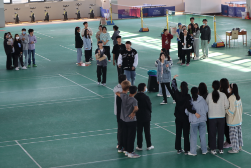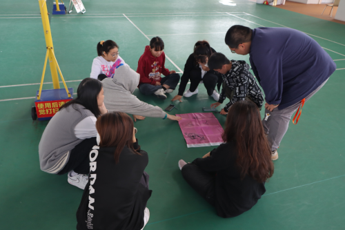 首先进行的是团队分组活动,由裁判组织同学们围成一个圆圈依次报数,以“团结就是力量”中字的顺序报数,报到相同字样分为一组。这样分组是为了让同学们可以多认识朋友,促进人际关系。