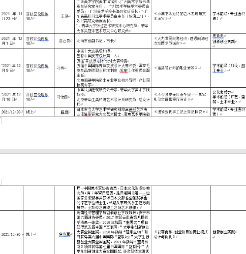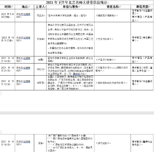 2021年下半年北艺名师大讲堂信息统计
