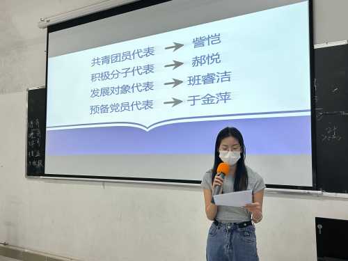 紧接着,在第二阶段中,共青团员代表訾恺同志、积极分子代表郝悦同志、发展对象代表班睿洁同志和预备党员代表于金萍同志分别向大家分享读书心得,结合阅读体会,围绕作者创作历程、创作心得等多个方面为大家作了精彩分享,获得了在场师生的掌声。